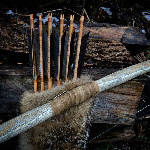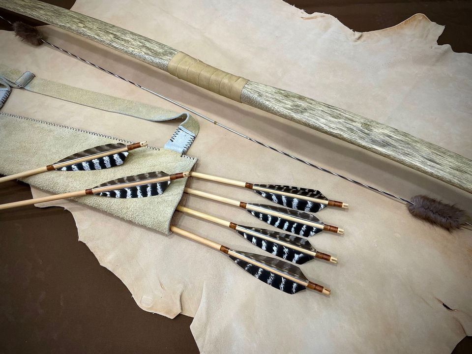 wild goose or wild turkey fletching, artificial sinew bindings, and a variety of hunting and target points.